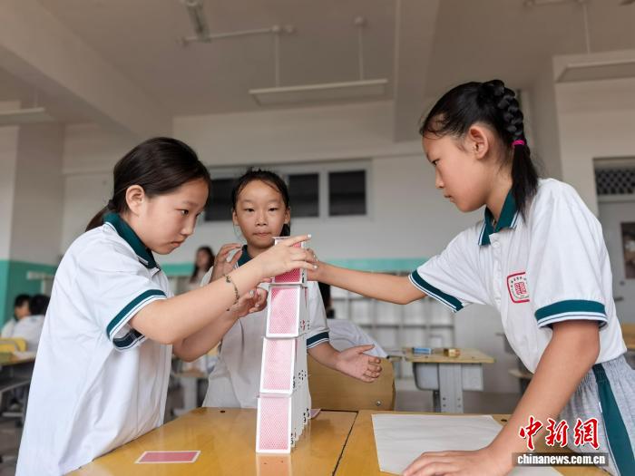 圖為武強(qiáng)縣中小學(xué)科學(xué)運(yùn)動(dòng)會(huì)撲克牌高塔搭建賽現(xiàn)場(chǎng)。王天祥 攝