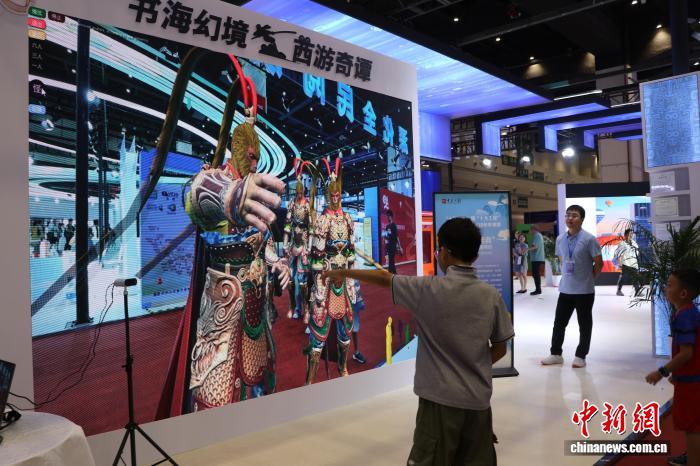 走進(jìn)河南數(shù)字出版展區(qū),來(lái)自國(guó)內(nèi)外的觀展游客絡(luò)繹不絕。在“我們的經(jīng)典”沉浸式神話研學(xué)一體化活動(dòng)空間內(nèi),眾多觀展的小朋友通過(guò)數(shù)字技術(shù)在大屏幕上化身“孫悟空”大戰(zhàn)妖怪。