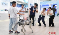 圖為活動(dòng)嘉賓參觀了解敦煌壁畫、彩塑等文化遺產(chǎn)的數(shù)字化保存與永續(xù)利用。中新社記者 李亞龍 攝