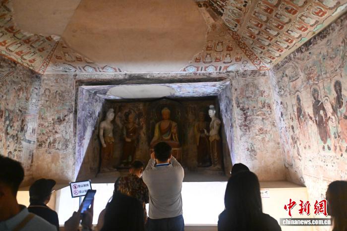 圖為活動(dòng)嘉賓參觀敦煌莫高窟復(fù)制窟。中新社記者 李亞龍 攝