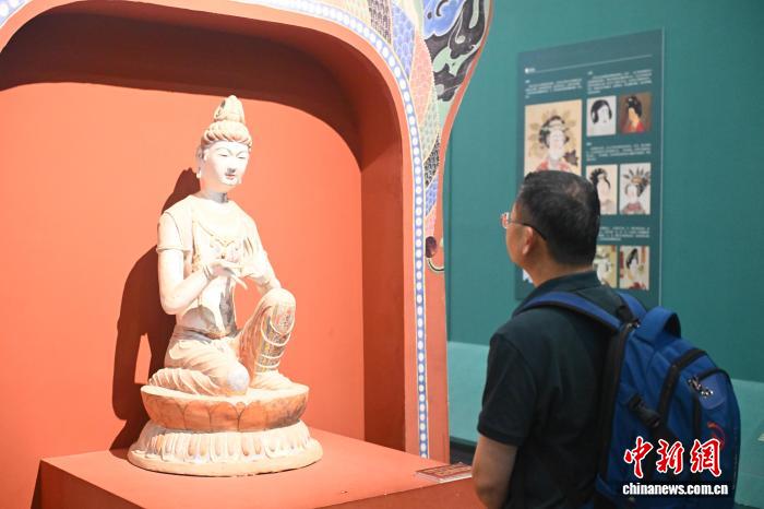 圖為活動(dòng)嘉賓參觀敦煌塑像。中新社記者 李亞龍 攝