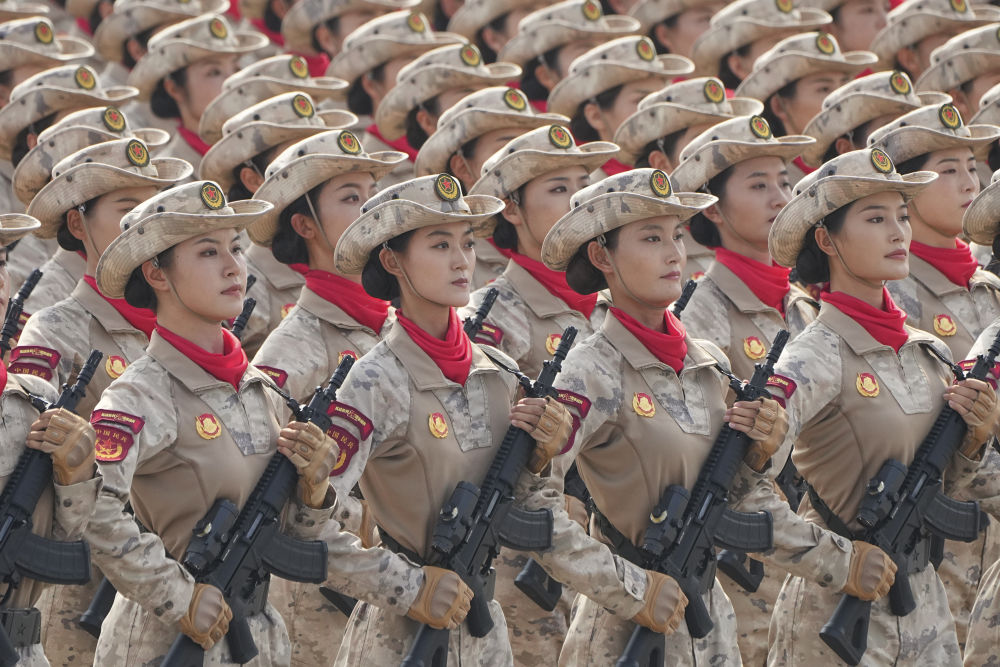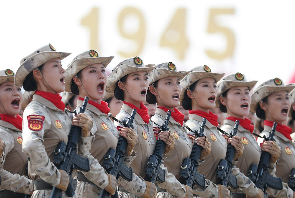 民兵方隊(duì)全部由女民兵組成。這是民兵首次亮相以紀(jì)念抗戰(zhàn)勝利為主題的閱兵活動(dòng)。