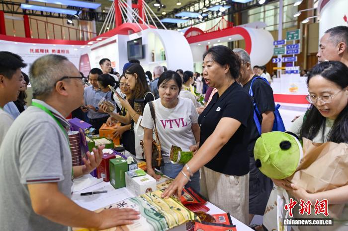 圖為眉山永豐村展臺前參觀者正在挑選農(nóng)產(chǎn)品。中新社記者 劉忠俊 攝
