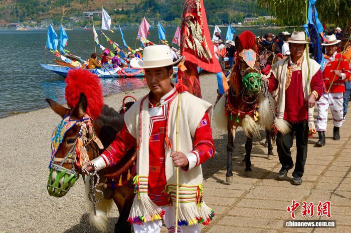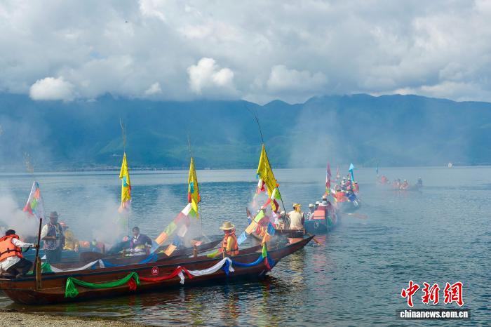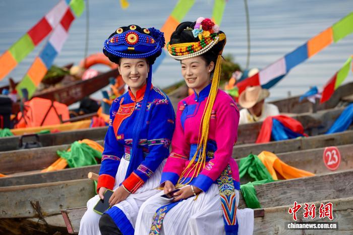 9月16日,涼山州首屆瀘沽湖轉(zhuǎn)山轉(zhuǎn)海節(jié)在鹽源瀘沽湖、木里香格里拉湖兩地同步舉辦。轉(zhuǎn)山轉(zhuǎn)海是摩梭人世代相傳的重要民俗活動(dòng),涼山州將每年農(nóng)歷七月二十五日設(shè)為“瀘沽湖轉(zhuǎn)山轉(zhuǎn)海節(jié)”,并將其納入地方法定節(jié)日。屆時(shí),鹽源、木里兩縣民眾還可享受一天專(zhuān)屬假期。圖為瀘沽湖轉(zhuǎn)?;顒?dòng)現(xiàn)場(chǎng)。鄭健 攝