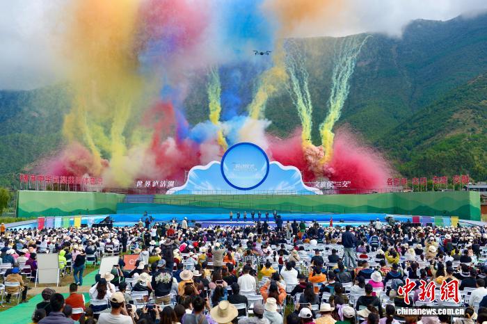 圖為瀘沽湖轉(zhuǎn)山轉(zhuǎn)海節(jié)開(kāi)幕現(xiàn)場(chǎng)。鄭健 攝