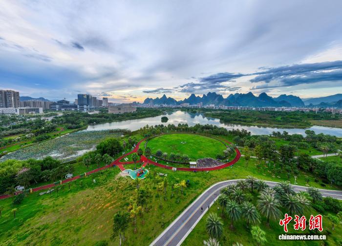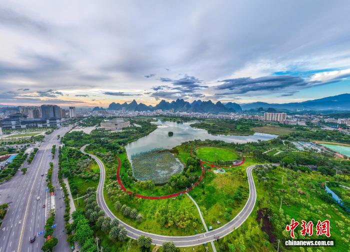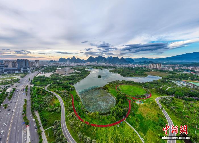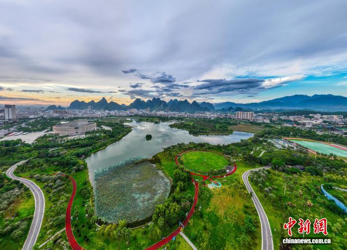 隨著秋天來臨,廣西賀州市愛蓮湖公園的林木郁郁蔥蔥,湖面如鏡。生態(tài)與城市樓宇、公園步道相互交融,構(gòu)成一幅如詩如畫的城市生態(tài)畫卷,美不勝收。圖為愛蓮湖。何華文 攝