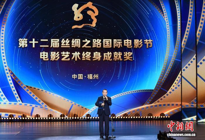 圖為啟動(dòng)儀式上中國導(dǎo)演陳凱歌被授予第十二屆絲綢之路國際電影節(jié)“電影藝術(shù)終身成就獎(jiǎng)”。中新社記者 張斌 攝