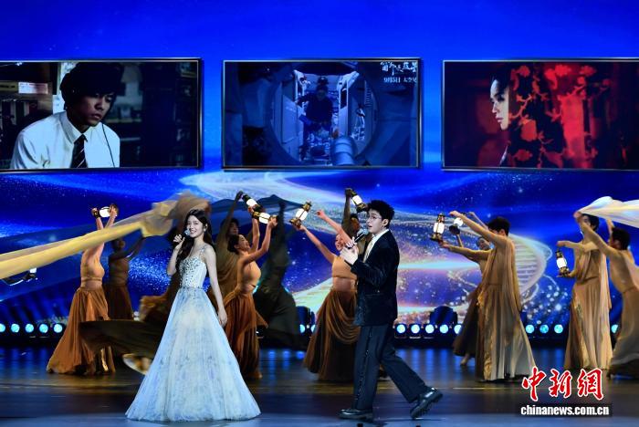圖為表演嘉賓徐若晗(左)和焦邁奇在啟動(dòng)儀式上演唱兩岸共創(chuàng)的經(jīng)典電影歌曲。中新社記者 張斌 攝