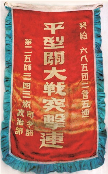 “平型關(guān)大戰(zhàn)突擊連”戰(zhàn)旗。