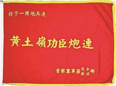 “黃土嶺功臣炮連”戰(zhàn)旗。