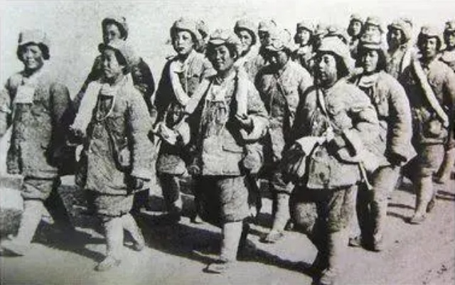 1949年冬天,袁國祥乘車行至托克遜縣庫米什戈壁時,遇見了從甘肅臨洮征召的女學生兵正徒步行軍。他為這支稚氣未消卻昂首挺胸、闊步向前的女兵隊伍,拍攝了著名的《西行女兵》照片。這些青春少女成為日后新疆最早的兵團建設(shè)者和戈壁母親。