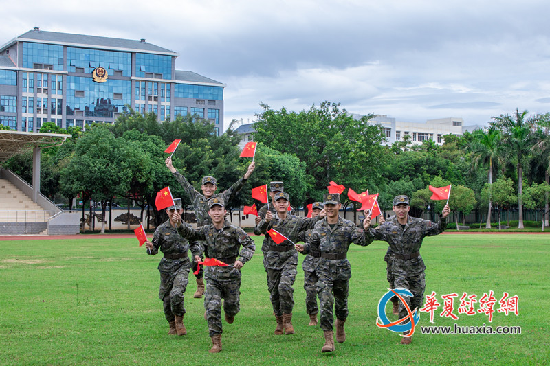 武警官兵揮舞著國旗為祖國慶生;