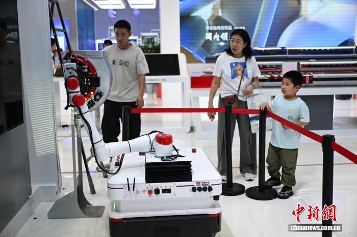 9月26日,軌道檢測機器人吸引參觀者。近日,第四屆全球數(shù)字貿易博覽會在浙江杭州舉行,大量的AI應用、機器人應用亮相展覽現(xiàn)場,先進科技吸引民眾。中新社記者 王剛 攝