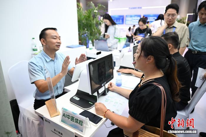 9月26日,參觀者體驗AI中醫(yī)體檢。近日,第四屆全球數(shù)字貿易博覽會在浙江杭州舉行,大量的AI應用、機器人應用亮相展覽現(xiàn)場,先進科技吸引民眾。中新社記者 王剛 攝