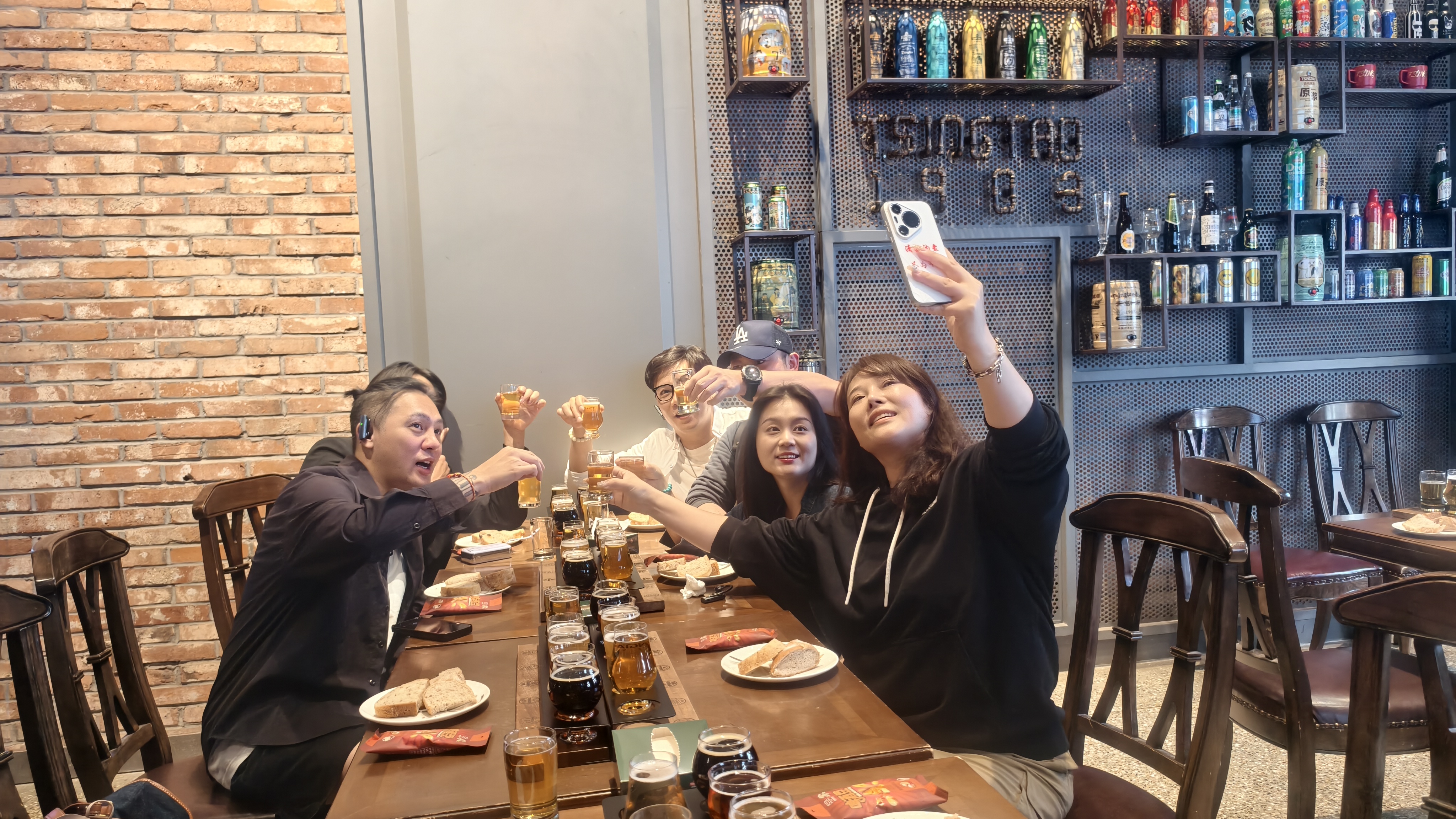 下午的行程聚焦青島的城市文化與歷史風(fēng)貌,兩岸媒體人一行先后前往青島啤酒博物館、中山路里院、青島市國(guó)際會(huì)議中心等地參訪。在青島啤酒博物館,眾人沿展區(qū)依次參觀,從百年前的德式釀酒設(shè)備到現(xiàn)代啤酒產(chǎn)業(yè)體系,從品牌初創(chuàng)時(shí)期的發(fā)展歷程到如今覆蓋全球的產(chǎn)業(yè)布局,全面回溯了青島啤酒的發(fā)展脈絡(luò)。隨后,眾人在現(xiàn)場(chǎng)品鑒不同工藝釀造的各類(lèi)風(fēng)味啤酒,在醇厚酒香中真切感受青島的啤酒文化以及其中承載的獨(dú)特城市記憶。臺(tái)青穆白在品酒后興奮地分享說(shuō):“以前只喝過(guò)青島啤酒,但從沒(méi)一次性喝過(guò)這么多(種)青島啤酒!”