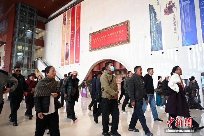 10月12日,內(nèi)蒙古呼和浩特市,海外歸國定居藏胞在內(nèi)蒙古博物院參觀。當(dāng)日,“僑連五洲·海外歸國定居藏胞代表人士國情教育活動”在呼和浩特進(jìn)入第一天行程。40余位海外歸國定居藏胞代表,接下來將用近一周時(shí)間,在呼和浩特、包頭、鄂爾多斯3地,直觀了解內(nèi)蒙古的人文歷史、生態(tài)建設(shè)與現(xiàn)代產(chǎn)業(yè)等方面內(nèi)容。中新社記者 劉文華 攝