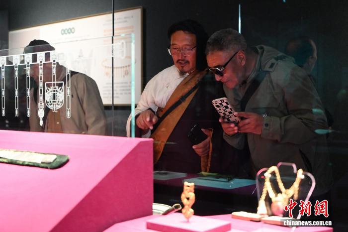 10月12日,內(nèi)蒙古呼和浩特市,海外歸國定居藏胞在內(nèi)蒙古博物院參觀遼代金飾。當(dāng)日,“僑連五洲·海外歸國定居藏胞代表人士國情教育活動”在呼和浩特進(jìn)入第一天行程。40余位海外歸國定居藏胞代表,接下來將用近一周時(shí)間,在呼和浩特、包頭、鄂爾多斯3地,直觀了解內(nèi)蒙古的人文歷史、生態(tài)建設(shè)與現(xiàn)代產(chǎn)業(yè)等方面內(nèi)容。中新社記者 劉文華 攝