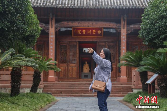 10月14日,江西吉安,臺灣青年新媒體人賴雅婷在白鷺洲書院拍攝視頻素材。白鷺洲書院為宋代江西四大書院之一,是廬陵文化的重要載體,現(xiàn)為全國重點文物保護單位。10月13日至14日,2025“媒眼贛鄱·風景獨好” 兩岸新媒體交流活動一行來到江西吉安市,先后前往了能仁巷歷史文化街區(qū)、白鷺洲書院、釣源古村、新干箱包皮具產(chǎn)業(yè)園、大洋洲商代青銅博物館等地參觀采風,實地感知廬陵文化的獨特魅力和社會經(jīng)濟發(fā)展成就。(無人機照片)中新社記者 劉力鑫 攝