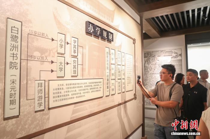 10月14日,江西吉安,兩岸新媒體人在白鷺洲書院參觀展覽。白鷺洲書院為宋代江西四大書院之一,是廬陵文化的重要載體,現(xiàn)為全國重點文物保護單位。10月13日至14日,2025“媒眼贛鄱·風景獨好” 兩岸新媒體交流活動一行來到江西吉安市,先后前往了能仁巷歷史文化街區(qū)、白鷺洲書院、釣源古村、新干箱包皮具產(chǎn)業(yè)園、大洋洲商代青銅博物館等地參觀采風,實地感知廬陵文化的獨特魅力和社會經(jīng)濟發(fā)展成就。(無人機照片)中新社記者 劉力鑫 攝