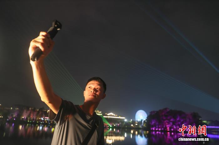 10月13日,江西吉安,臺灣青年新媒體人劉世鑫在乘船游覽后河·夢回廬陵景區(qū)時拍攝視頻素材。10月13日至14日,2025“媒眼贛鄱·風景獨好” 兩岸新媒體交流活動一行來到江西吉安市,先后前往了能仁巷歷史文化街區(qū)、白鷺洲書院、釣源古村、新干箱包皮具產(chǎn)業(yè)園、大洋洲商代青銅博物館等地參觀采風,實地感知廬陵文化的獨特魅力和社會經(jīng)濟發(fā)展成就。中新社記者 劉力鑫 攝
