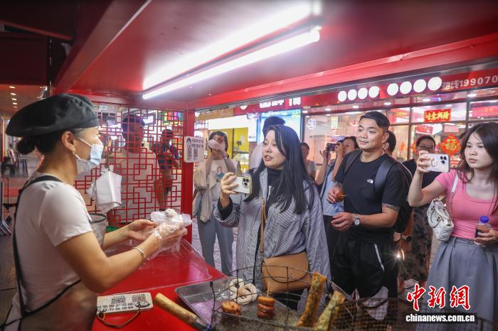 10月13日,江西吉安, 兩岸新媒體人在能仁巷歷史文化街區(qū)參觀時,與吉安傳統(tǒng)小吃制作人交流并拍攝素材。10月13日至14日,2025“媒眼贛鄱·風景獨好” 兩岸新媒體交流活動一行來到江西吉安市,先后前往了能仁巷歷史文化街區(qū)、白鷺洲書院、釣源古村、新干箱包皮具產(chǎn)業(yè)園、大洋洲商代青銅博物館等地參觀采風,實地感知廬陵文化的獨特魅力和社會經(jīng)濟發(fā)展成就。中新社記者 劉力鑫 攝