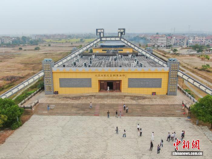 10月14日,江西吉安, 兩岸新媒體人來到新干縣的大洋洲商代青銅博物館參觀,感受古老神秘的青銅文化魅力。新干商代大墓共出土青銅器475件,玉器754件,陶器139件,其中五件文物被定為國寶級文物。該墓的考古發(fā)掘被評為“七五”期間全國十大考古發(fā)現(xiàn)之一,新干因此被譽為“江南青銅王國”。10月13日至14日,2025“媒眼贛鄱·風景獨好” 兩岸新媒體交流活動一行來到江西吉安市,先后前往了能仁巷歷史文化街區(qū)、白鷺洲書院、釣源古村、新干箱包皮具產(chǎn)業(yè)園、大洋洲商代青銅博物館等地參觀采風,實地感知廬陵文化的獨特魅力和社會經(jīng)濟發(fā)展成就。(無人機照片)中新社記者 劉力鑫 攝