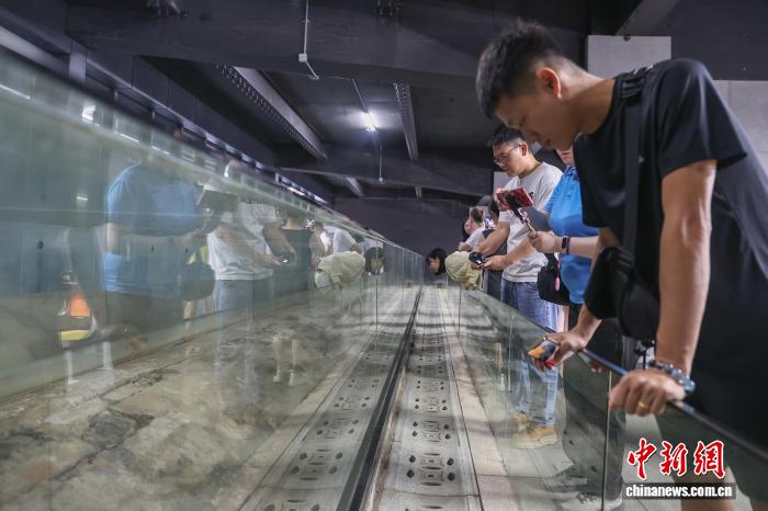 10月15日,江西贛州,兩岸新媒體人在福壽溝博物館內(nèi)觀看福壽溝雙溝遺址(圖左)?!案蹨稀笔冀ㄓ谒未?,是埋藏在贛州老城區(qū)地下,至今仍在使用的中國古代城市下水道工程,福壽溝博物館即建立在一段保存非常完好的福壽溝雙溝遺址上,是中國唯一地下排水系統(tǒng)博物館。中新社記者 劉力鑫 攝