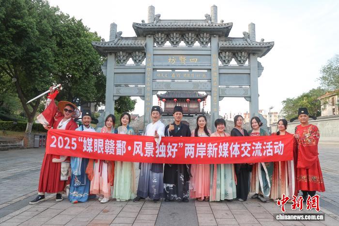 10月15日,江西贛州,兩岸新媒體人身著古裝在江南宋城歷史文化街區(qū)合影。中新社記者 劉力鑫 攝