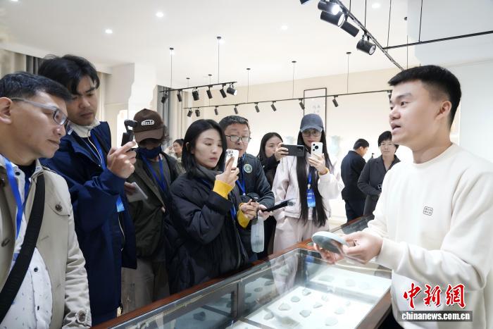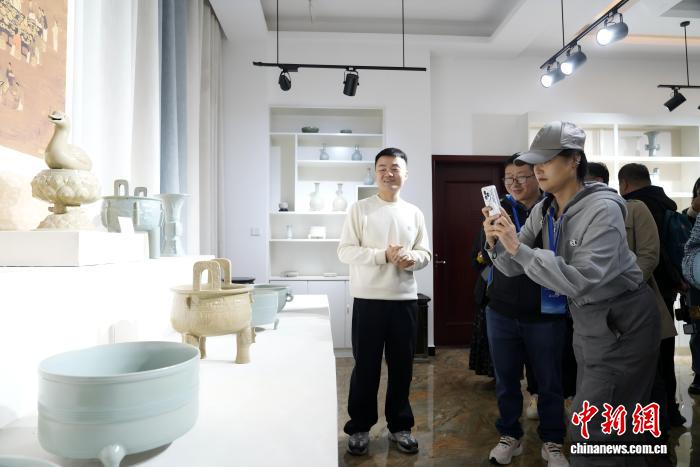 10月19日,河南平頂山汝州,參加“中國(guó)式現(xiàn)代化發(fā)展看河南”2025兩岸媒體聯(lián)合采訪活動(dòng)的數(shù)十位媒體人、自媒體從業(yè)者等走進(jìn)中國(guó)汝瓷博物館和汝瓷生產(chǎn)企業(yè),感受千年汝瓷文化。圖為臺(tái)灣自媒體從業(yè)者在了解汝瓷文化。王佳寧 攝