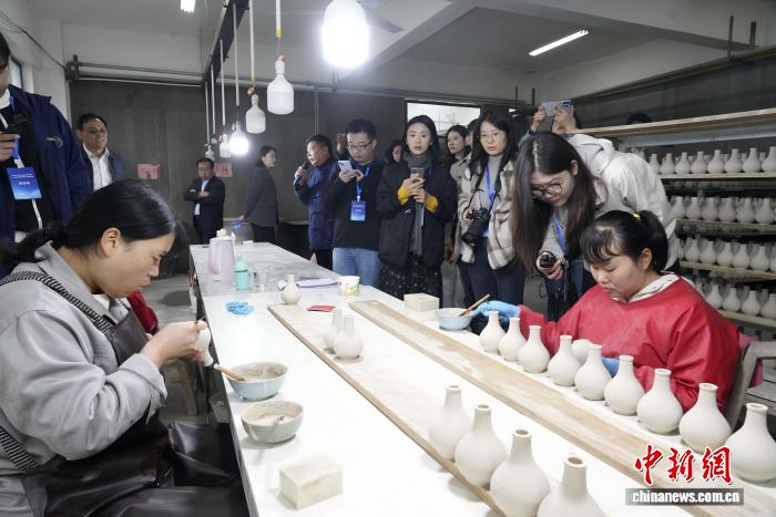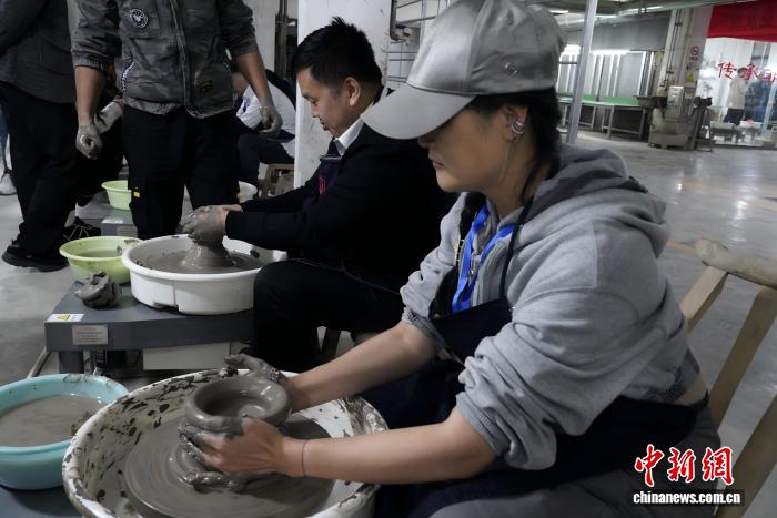 10月19日,河南平頂山汝州,參加“中國(guó)式現(xiàn)代化發(fā)展看河南”2025兩岸媒體聯(lián)合采訪活動(dòng)的數(shù)十位媒體人、自媒體從業(yè)者等走進(jìn)中國(guó)汝瓷博物館和汝瓷生產(chǎn)企業(yè),感受千年汝瓷文化。圖為臺(tái)灣媒體人體驗(yàn)汝瓷制作過(guò)程。王佳寧 攝