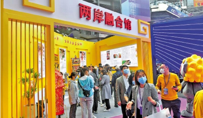 圖:兩岸關系和平發(fā)展、融合發(fā)展是通向統(tǒng)一的重要途徑。圖為在福建石獅舉辦的展會設有兩岸融合館。/資料圖片