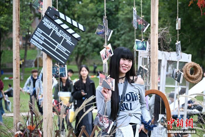 11月1日,第3屆粵港澳大灣區(qū)大學(xué)生電影周暨第21屆廣州大學(xué)生電影展“晚風(fēng)FUN映”電影之夜在位于廣州市的華南農(nóng)業(yè)大學(xué)舉辦。圖為互動(dòng)拍照點(diǎn)吸引學(xué)生體驗(yàn)。中新社記者 陳楚紅 攝