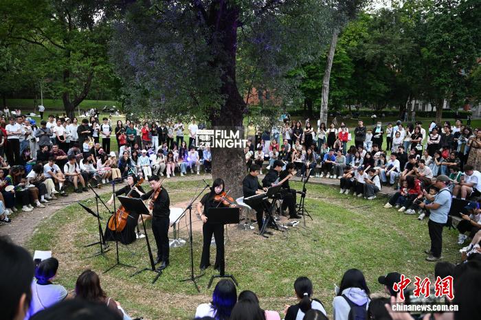 11月1日,第3屆粵港澳大灣區(qū)大學(xué)生電影周暨第21屆廣州大學(xué)生電影展“晚風(fēng)FUN映”電影之夜在位于廣州市的華南農(nóng)業(yè)大學(xué)舉辦。圖為音樂(lè)演出吸引民眾。中新社記者 陳楚紅 攝