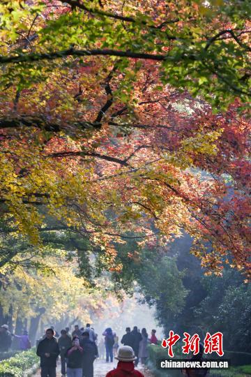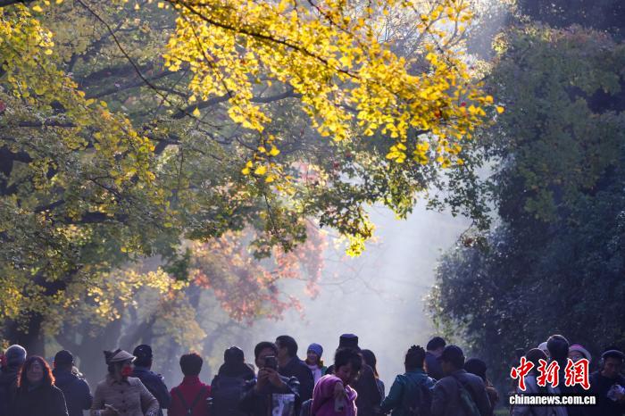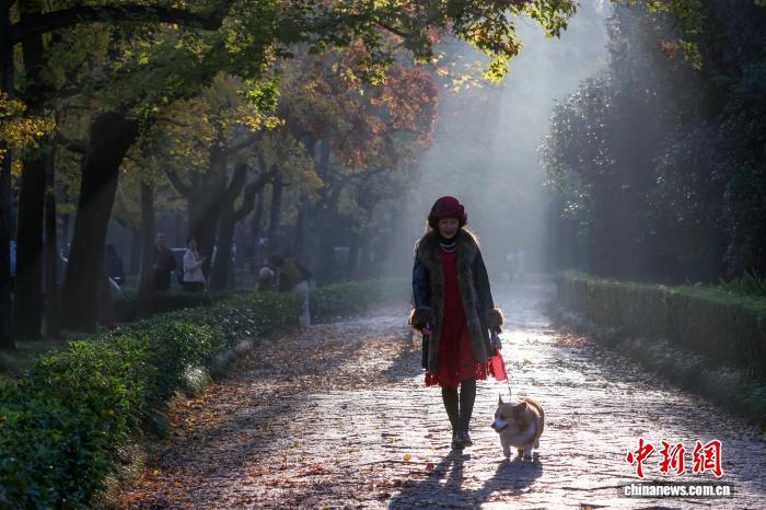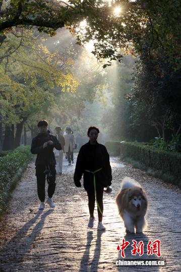 11月12日清晨,市民走進世界文化遺產(chǎn)南京明孝陵,在有著六百多年歷史的石象路光影中盡享濃濃秋意。中新社記者 泱波 攝