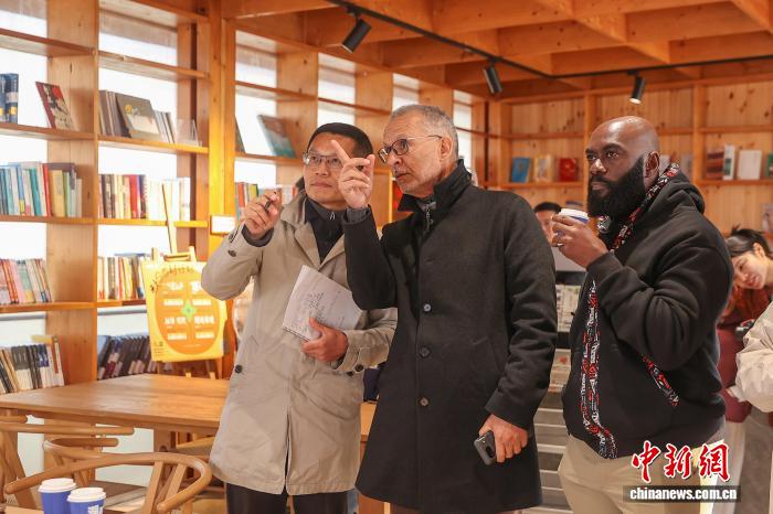 圖為中外嘉賓在湖陂村的靈感書屋參觀調(diào)研。中新社記者 劉力鑫 攝