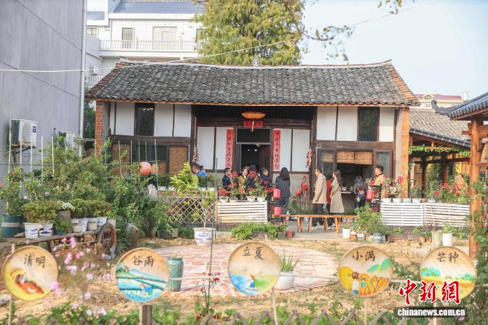 圖為游客在湖陂村的福氣小站喝咖啡,這是一家由老房子改造而成的鄉(xiāng)村咖啡店。中新社記者 劉力鑫 攝
