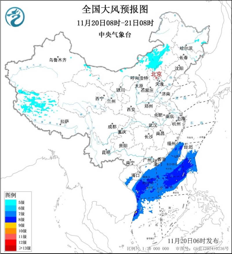 我國東南部和南部近海有大風。今明兩天,我國東南部和南部近海仍有大風。中央氣象臺今晨繼續(xù)發(fā)布大風藍色預(yù)警:今天,臺灣海峽、臺灣以東洋面偏南海域、巴士海峽、南海北部和中部海域、南海西南部偏西海域?qū)⒂?~8級、陣風9~10級的大風。在上述海域航行、作業(yè)的船舶需注意安全。