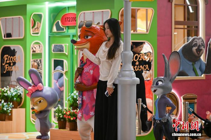 12月4日,市民與“瘋狂動物城”經(jīng)典角色合影。中新社記者 李嘉嫻 攝
