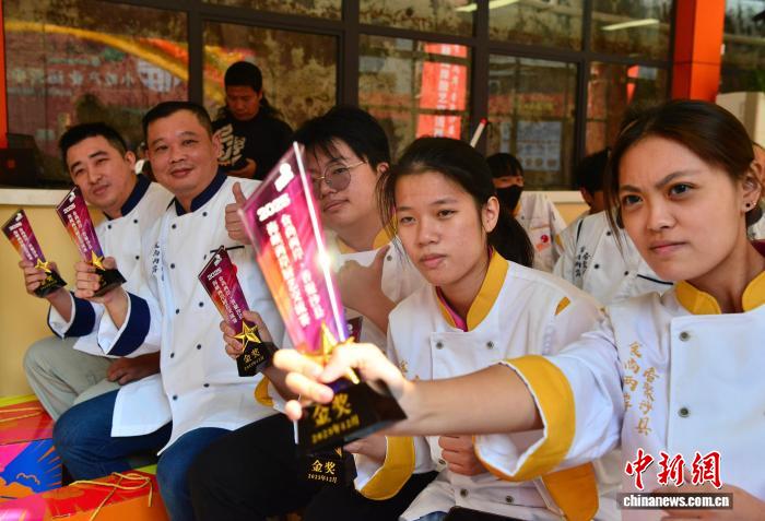 12月8日,2025“食尚兩岸·香聚沙縣”海峽兩岸廚藝交流賽加分場(chǎng)暨頒獎(jiǎng)典禮舉行。本次比賽在福建省三明市沙縣小吃食品產(chǎn)業(yè)園舉行,30名臺(tái)灣學(xué)生與20名臺(tái)灣青年廚師組成10組隊(duì)伍,對(duì)沙臺(tái)兩地小吃進(jìn)行深度體驗(yàn),同步開展廚藝競(jìng)賽。圖為獲得比賽金獎(jiǎng)的隊(duì)伍在頒獎(jiǎng)典禮后拍照留念。中新社記者 張斌 攝