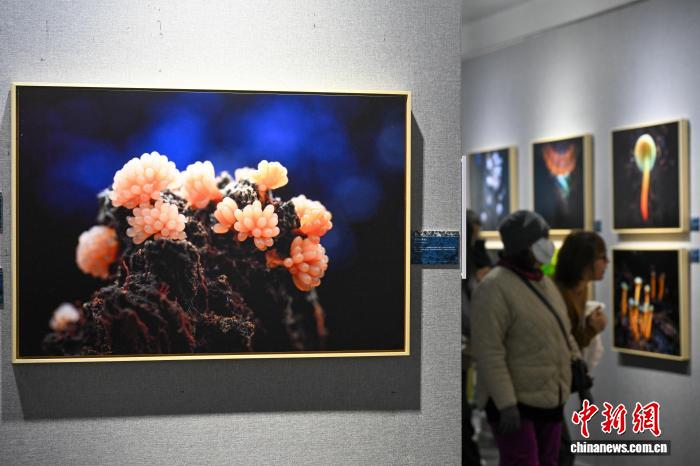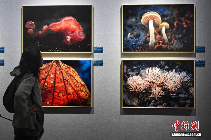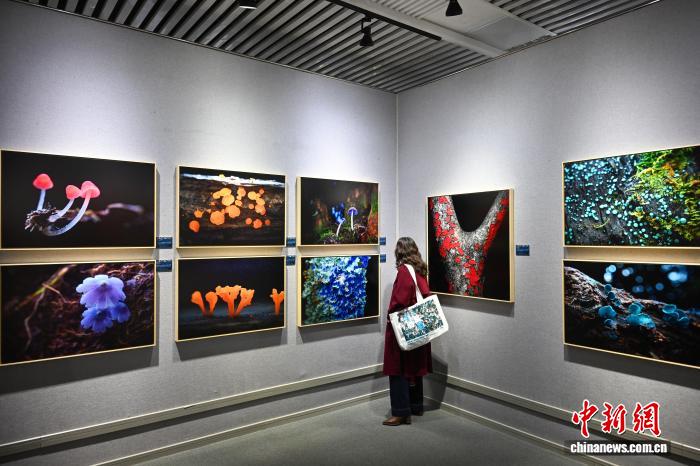 12月17日,展出作品《菇璃菇璃》吸引觀眾拍照。當(dāng)日,“蘑幻菌物——高黎貢山真菌類多樣性攝影藝術(shù)展”在位于昆明市的云南省圖書館開展,展覽以攝影藝術(shù)作品及衍生出的繪畫作品、藝術(shù)周邊作品為媒介,探秘“世界物種基因庫(kù)”高黎貢山,揭開真菌王國(guó)鮮為人知的奇幻與瑰麗。中新社記者 李嘉嫻 攝
