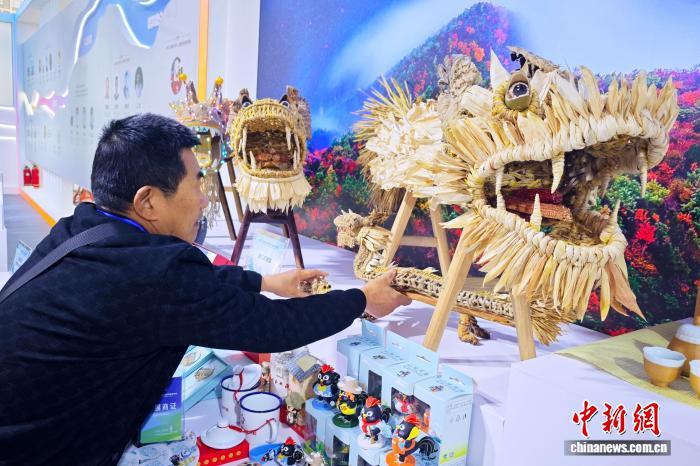 圖為交易會展出的用稻草等材料制作的達州安仁板凳龍。中新社記者 張浪 攝