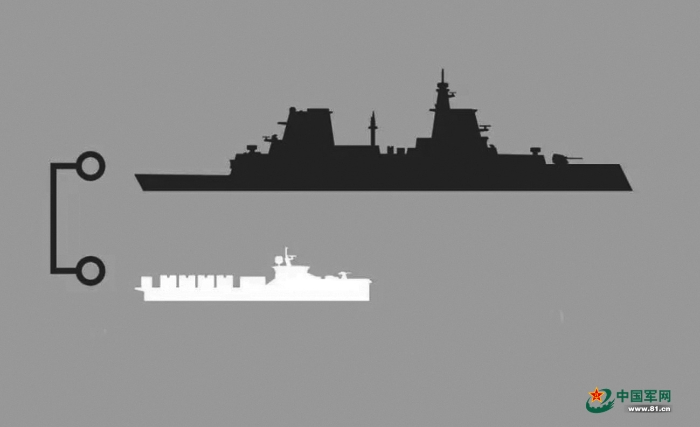 無人導彈武庫艦(下)及F127護衛(wèi)艦(上)外觀大小對比圖。