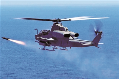 直升機發(fā)射“狼群”導彈?! ?/p>