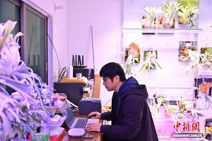 1月22日,賴昀辰在位于廣州市的蘭花基地處理蘭花線上訂單。中新社記者 陳楚紅 攝