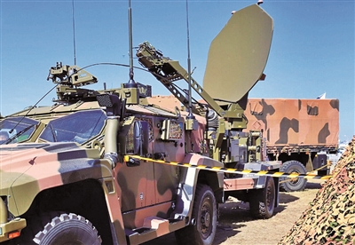 帶無(wú)線電天線的聯(lián)網(wǎng)軍用車輛。