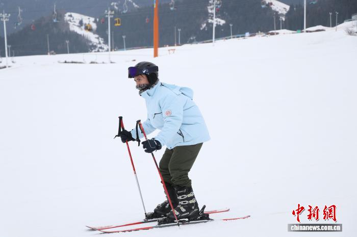 盡管戶外氣溫偏低,但滑雪場(chǎng)內(nèi)氣氛熱烈。初上雪場(chǎng)的臺(tái)灣青年動(dòng)作略顯生澀,但在教練的耐心指導(dǎo)下逐漸掌握平衡。