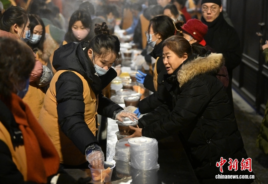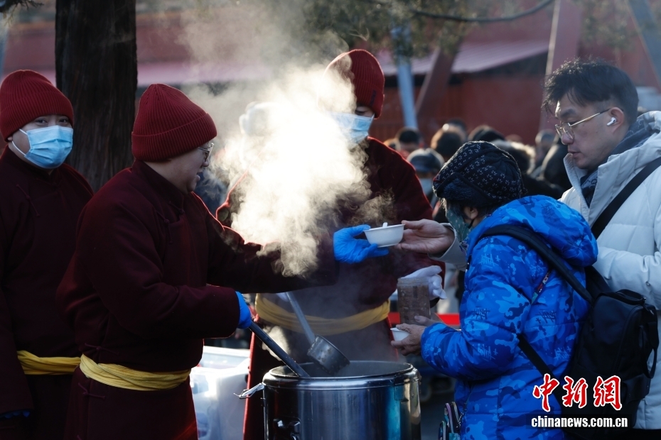 1月26日是中國(guó)傳統(tǒng)臘八節(jié),有喝臘八粥的習(xí)俗。圖為市民在北京雍和宮喝臘八粥。