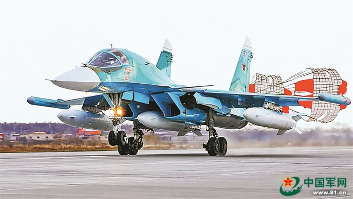 掛載3個(gè)副油箱的蘇-34戰(zhàn)機(jī)。