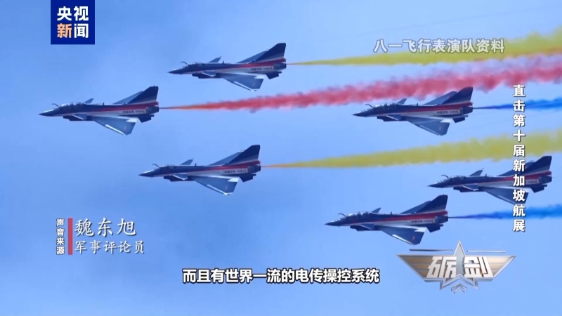 軍事評(píng)論員 魏東旭:六機(jī)同步橫滾是非常有難度的。殲-10C六機(jī)編隊(duì)是以一種密集的編隊(duì)同步進(jìn)行橫滾。先進(jìn)噴氣式戰(zhàn)斗機(jī)距離比較近,飛機(jī)之間是有氣流干擾的。還要進(jìn)行同步的橫滾動(dòng)作,對(duì)于飛行員操控飛機(jī),還有飛機(jī)的性能都提出了很高的要求。