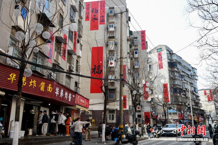 圖為五一路上房屋墻面上的新春祝福語。中新社記者 張暢 攝